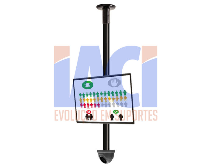 Suportes com fixação no teto, parede ou piso para câmeras e monitores.